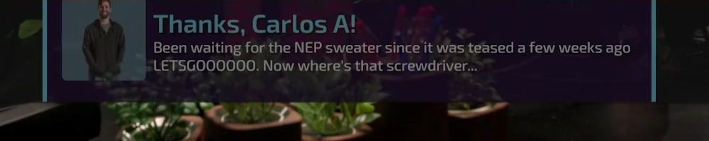 Thanks, Carlos A! Been waiting for the NEP sweater since it was teased a few weeks ago LETSGOOO000O0. Now where's that screwdriver...