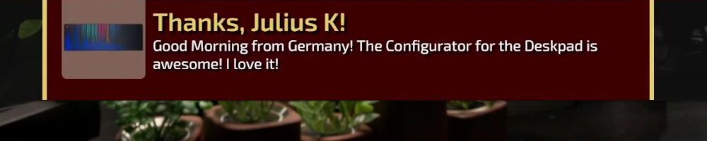 Thanks, Julius K! Good Morning from Germany! The Configurator for the Deskpad is awesome! I love it!