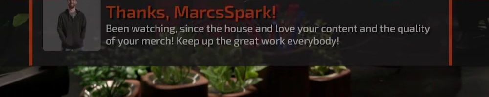 Thanks, MarcsSpark! Been watching, since the house and love your content and the quality of your merch! Keep up the great work everybody!