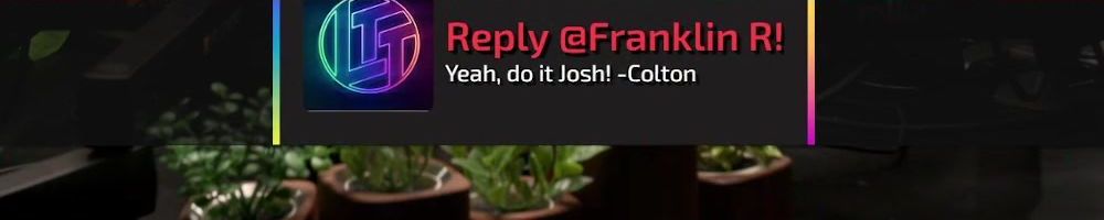 Reply @Franklin R! Yeah, do it Josh! -Colton