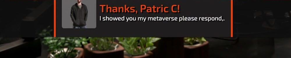 Thanks, Patric C! I showed you my metaverse please respond,.