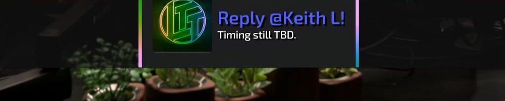 Reply @Keith L! Timing still TBD.