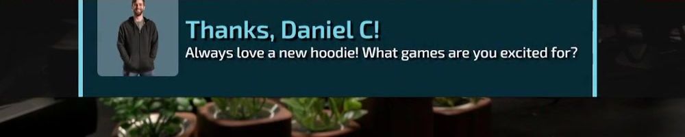 Thanks, Daniel C! Always love a new hoodie! What games are you excited for?