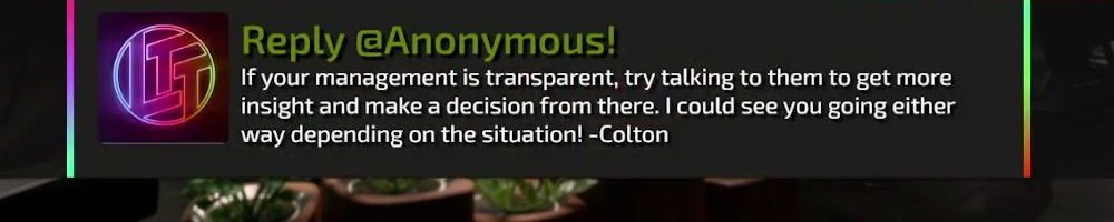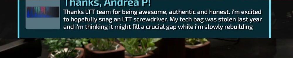 Thanks, Andrea P! Thanks LTT team for being awesome, authentic and honest. i'm excited to hopefully snag an LTT screwdriver. My tech bag was stolen last year and i'm thinking it might fill a crucial gap while i'm slowly rebuilding