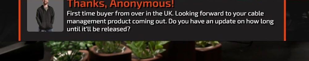 Thanks, Anonymous! First time buyer from over in the UK. Looking forward to your cable management product coming out. Do you have an update on how long until it'll be released?