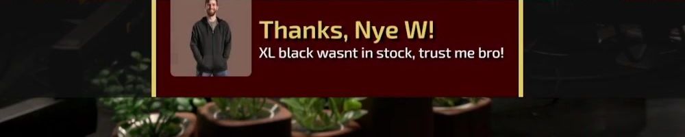 Hint: Use CTRL + F to search messages in this show, or use Whenplane's WAN Show Search tool to search for messages in all shows. Make sure that the "Merch Messages" box is checked when you search for something.