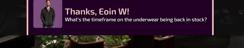 Thanks, Eoin W! What's the timeframe on the underwear being back in stock?