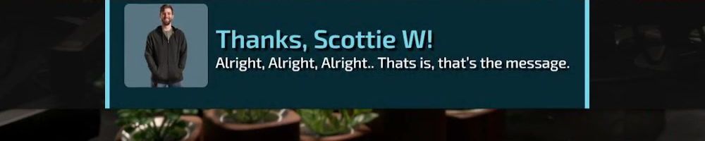 Thanks, Scottie W! Alright, Alright, Alright.. Thats is, that's the message.