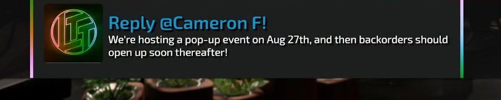 Reply @Cameron F! We're hosting a pop-up event on Aug 27th, and then backorders should open up soon thereafter!