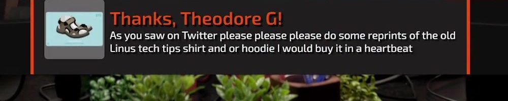 Linus tech tips shirt and or hoodie I would buy it in a heartbeat