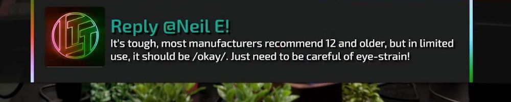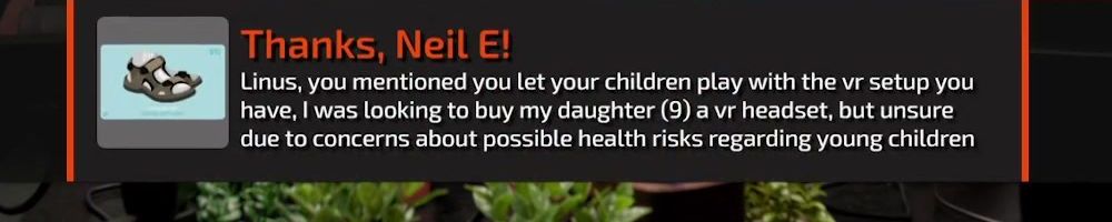 Linus, you mentioned you let your children play with the vr setup you have, I was looking to buy my daughter (9) a vr headset, but unsure due to concerns about possible health risks regarding young children