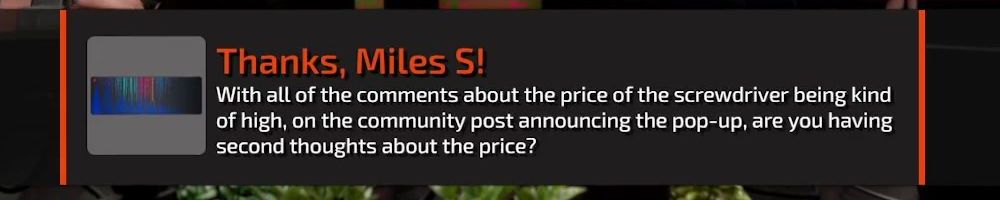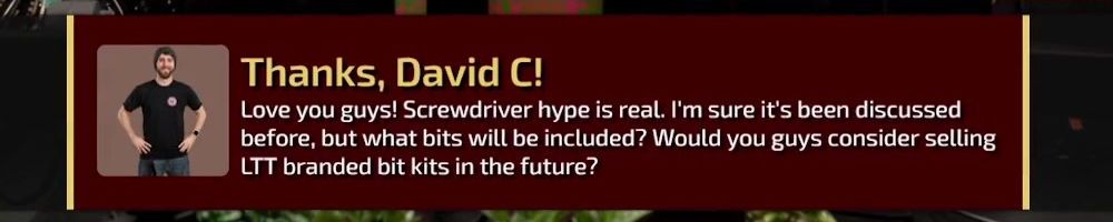 Love you guys! Screwdriver hype is real. I'm sure it's been discussed before, but what bits will be included? Would you guys consider selling LTT branded bit kits in the future?