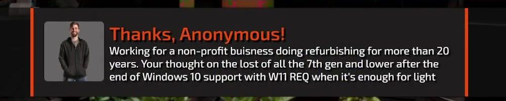 Working for a non-profit buisness doing refurbishing for more than 20 years. Your thought on the lost of all the 7th gen and lower after the end of Windows 10 support with W11 REQ when it's enough for light