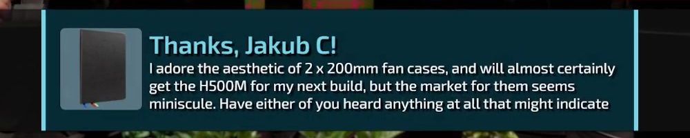 I adore the aesthetic of 2 x 200mm fan cases, and will almost certainly get the H500M for my next build, but the market for them seems miniscule. Have either of you heard anything at all that might indicate