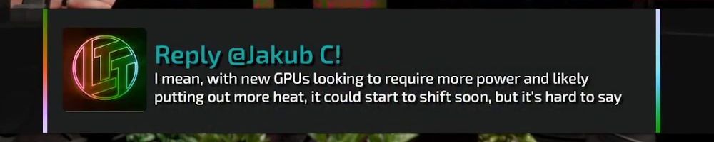 I mean, with new GPUs looking to require more power and likely putting out more heat, it could start to shift soon, but it's hard to say