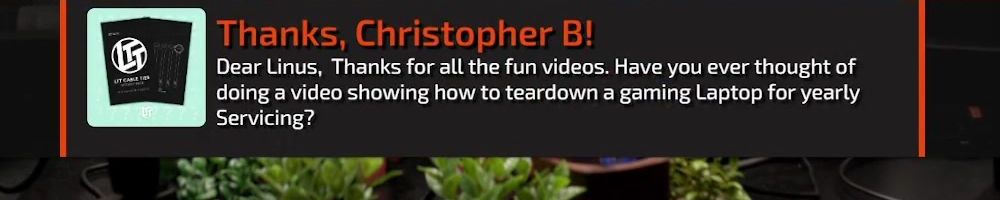 Dear Linus, Thanks for all the fun videos. Have you ever thought of doing a video showing how to teardown a gaming Laptop for yearly Servicing?