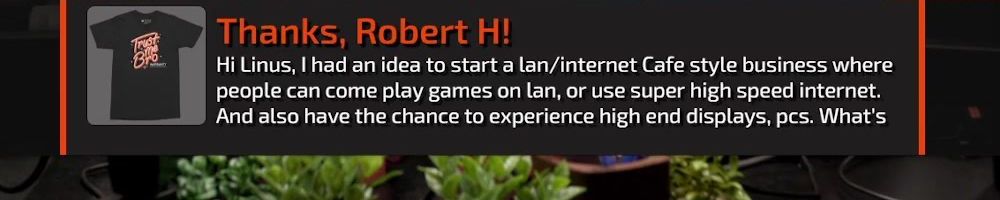 Hi Linus, I had an idea to start a lan/internet Cafe style business where people can come play games on lan, or use super high speed internet. And also have the chance to experience high end displays, pcs. What's