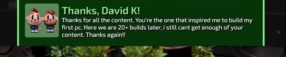 Thanks for all the content. You're the one that inspired me to build my first pc. Here we are 20+ builds later, i still cant get enough of your content. Thanks again!!