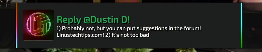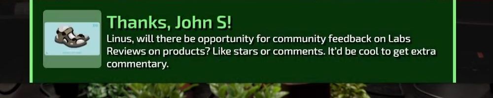 Linus, will there be opportunity for community feedback on Labs Reviews on products? Like stars or comments. It'd be cool to get extra commentary.
