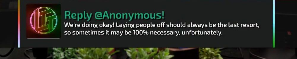 Every tech industry giant including Apple and Google is enacting or rumored to soon be enacting layoffs, is that coming to LMG as well? Is that a wise financial choice for the greater good of the company?