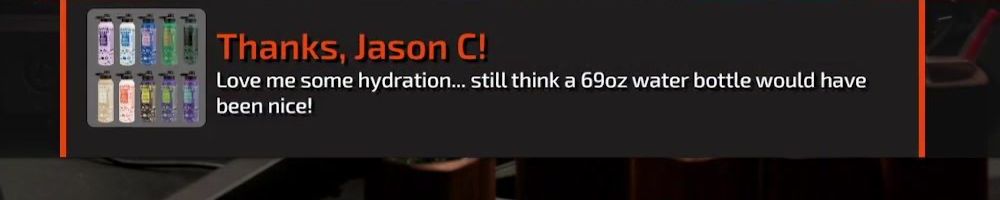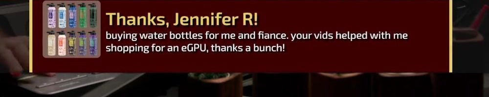 Thanks, Jennifer R! buying water bottles for me and fiance. your vids helped with me shopping for an eGPU, thanks a bunch!