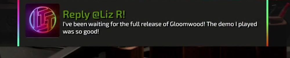Reply @Liz R! I've been waiting for the full release of Gloomwood! The demo I played was so good!