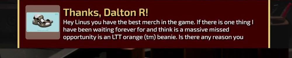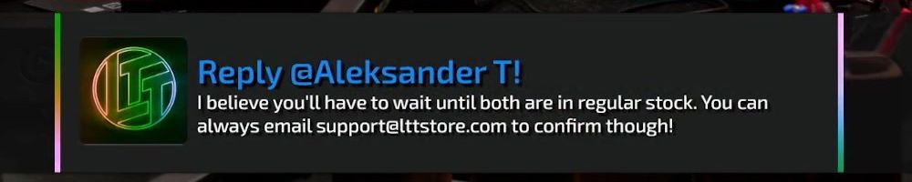 Thanks, Cooper G! First purchase on LTT store! Can't wait for LTX 2023! What is a new and upcoming tech that you are most excited about? Also, shipping was way less than I thought. Bought a TV main board and it had more