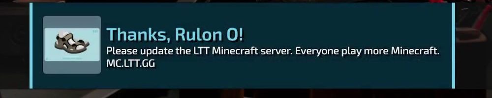 Thanks, Rulon O! Please update the LTT Minecraft server. Everyone play more Minecraft. MC.LTT.GG