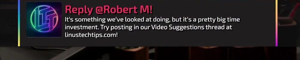 Reply @Robert M! It's something we've looked at doing, but it's a pretty big time investment. Try posting in our Video Suggestions thread at linustechtips.com!
