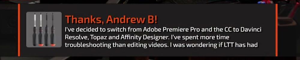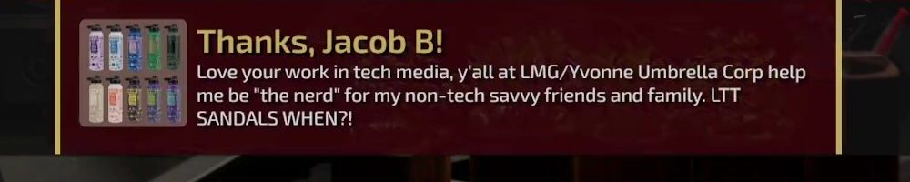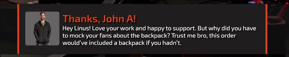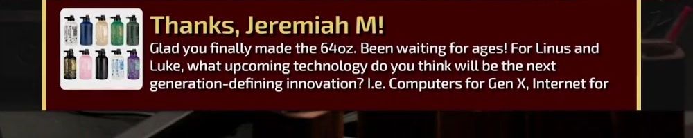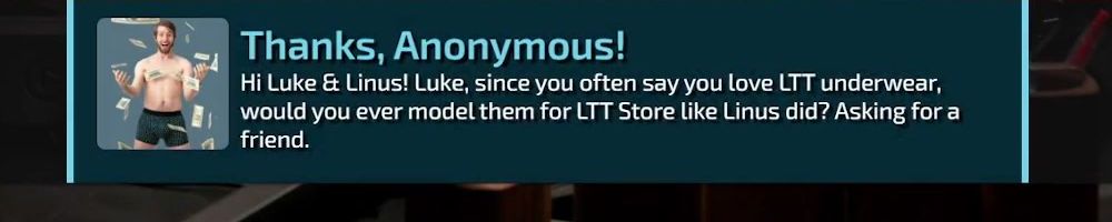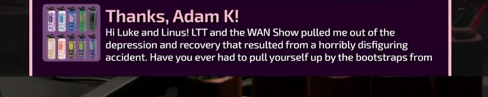 Thanks, Adam K! Hi Luke and Linus! LTT and the WAN Show pulled me out of the depression and recovery that resulted from a horribly disfiguring accident. Have you ever had to pull yourself up by the bootstraps from