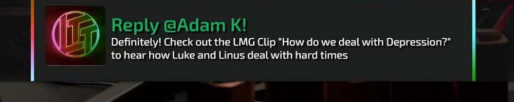 Reply @Adam K! Definitely! Check out the LMG Clip "How do we deal with Depression?" to hear how Luke and Linus deal with hard times