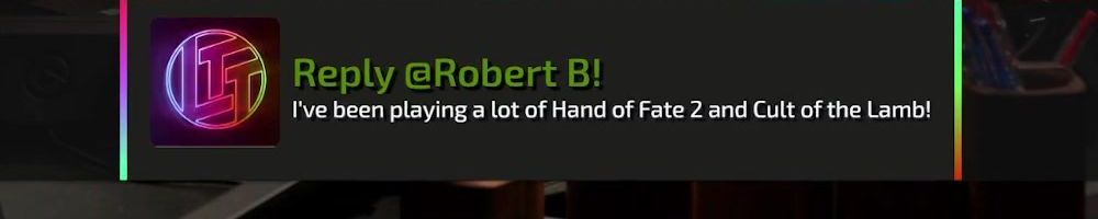 Reply @Robert B! I've been playing a lot of Hand of Fate 2 and Cult of the Lamb!