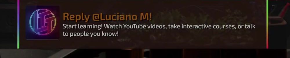 Reply @Luciano M! Start learning! Watch YouTube videos, take interactive courses, or talk to people you know!