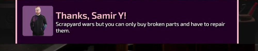 Thanks, Samir Y! Scrapyard wars but you can only buy broken parts and have to repair them.