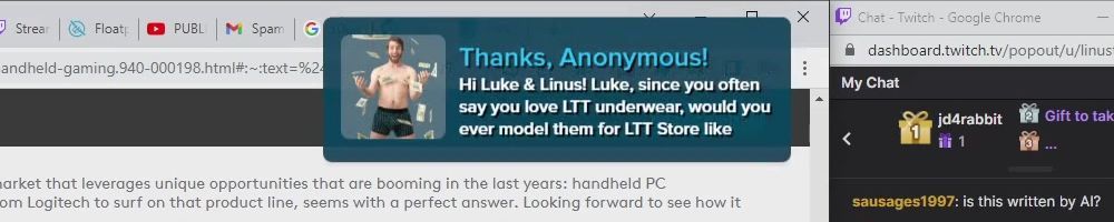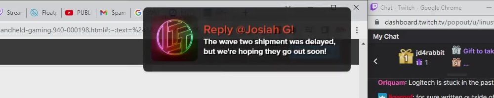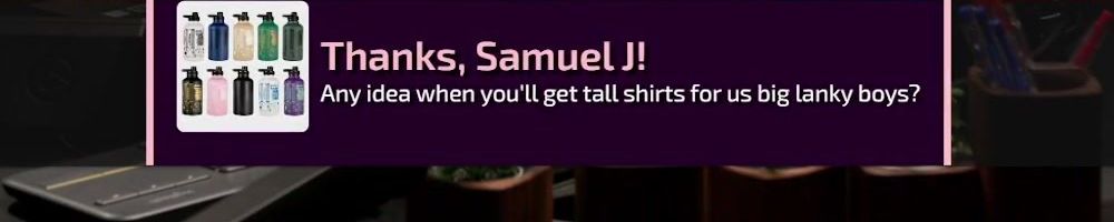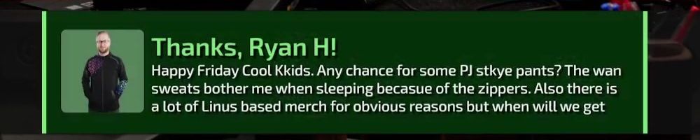 Hint: Use CTRL + F to search messages in this show, or use Whenplane's WAN Show Search tool to search for messages in all shows. Make sure that the "Merch Messages" box is checked when you search for something.