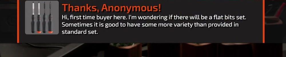 Thanks, Zach B! Hi Linus, Would you consider selling all of the screwdriver bits as a set. Maybe put them in a tray like the Ifixit screwdriver kit.