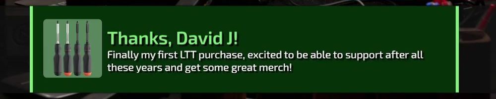 Thanks, David J! Finally my first LTT purchase, excited to be able to support after all these years and get some great merch!