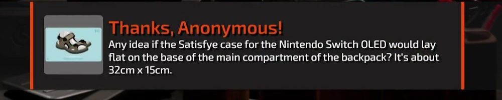 Thanks, Anonymous! Any idea if the Satisfye case for the Nintendo Switch OLED would lay flat on the base of the main compartment of the backpack? It's about 32cm x 15cm.
