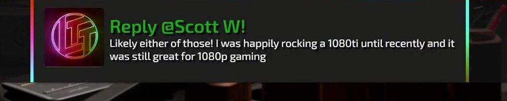 Reply @Scott W! Likely either of those! I was happily rocking a 1080ti until recently and it was still great for 1080p gaming