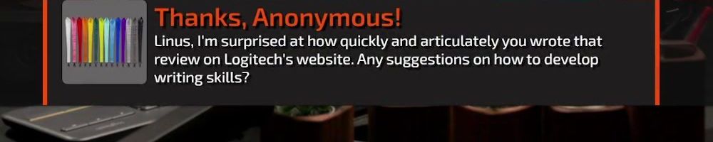 Thanks, Anonymous! Linus, I'm surprised at how quickly and articulately you wrote that review on Logitech's website. Any suggestions on how to develop writing skills?