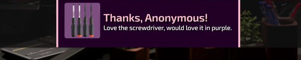 Thanks, Anonymous! Love the screwdriver, would love it in purple.