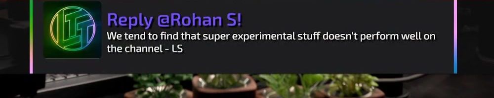 Reply @Rohan S! We tend to find that super experimental stuff doesn't perform well on the channel - LS