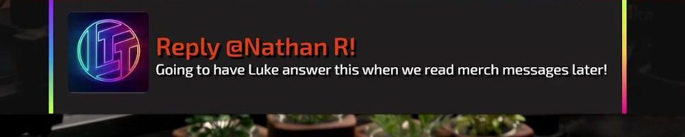 Reply @Nathan R! Going to have Luke answer this when we read merch messages later!
