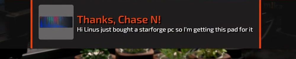 Thanks, Chase N! Hi Linus just bought a starforge pc so I'm getting this pad for it