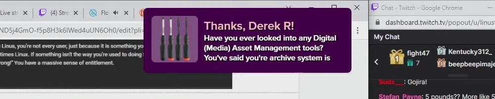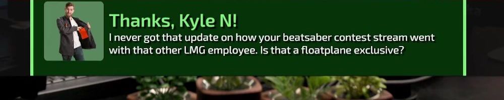 Thanks, Kyle N! I never got that update on how your beatsaber contest stream went with that other LMG employee. Is that a floatplane exclusive?