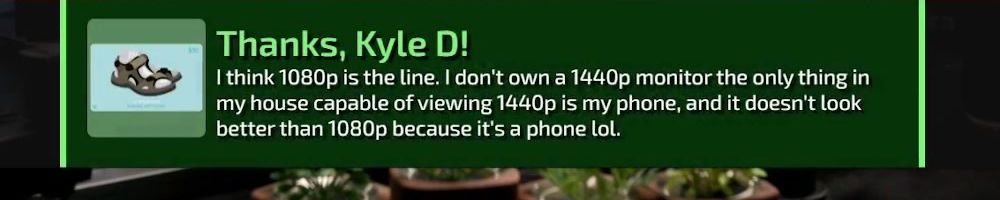 Thanks, Kyle D! I think 1080p is the line. I don't own a 1440p monitor the only thing in my house capable of viewing 1440p is my phone, and it doesn't look better than 1080p because it's a phone lol.