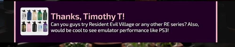 Thanks, Timothy T! Can you guys try Resident Evil Village or any other RE series? Also, would be cool to see emulator performance like PS3!