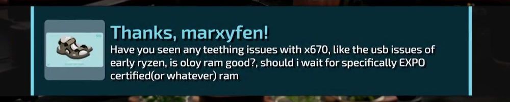 Thanks, marxyfen! Have you seen any teething issues with x670, like the usb issues of early ryzen, is oloy ram good?, should i wait for specifically EXPO certified(or whatever) ram