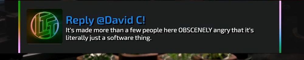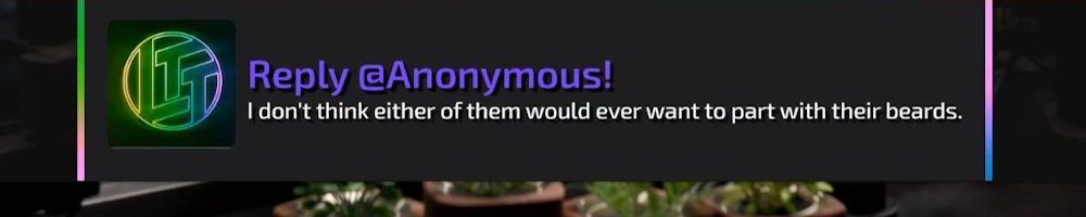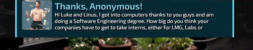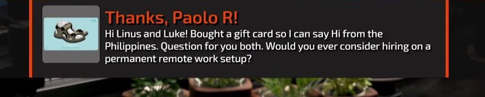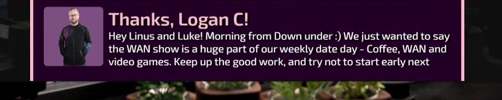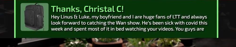 Thanks, Christal C! Hey Linus & Luke, my boyfriend and I are huge fans of LTT and always look forward to catching the Wan show. He's been sick with covid this week and spent most of it in bed watching your videos. You guys are