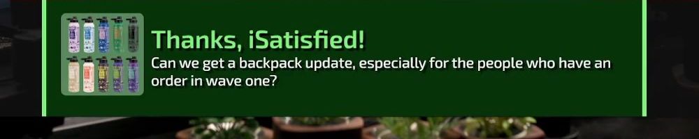 Thanks, Daniel L! Any update on the backpack shipment delays? Getting a screwdriver and an extra water bottle to fill up my backpack when I get it. Long time viewer thanks for the great content over the multitude of channels.
